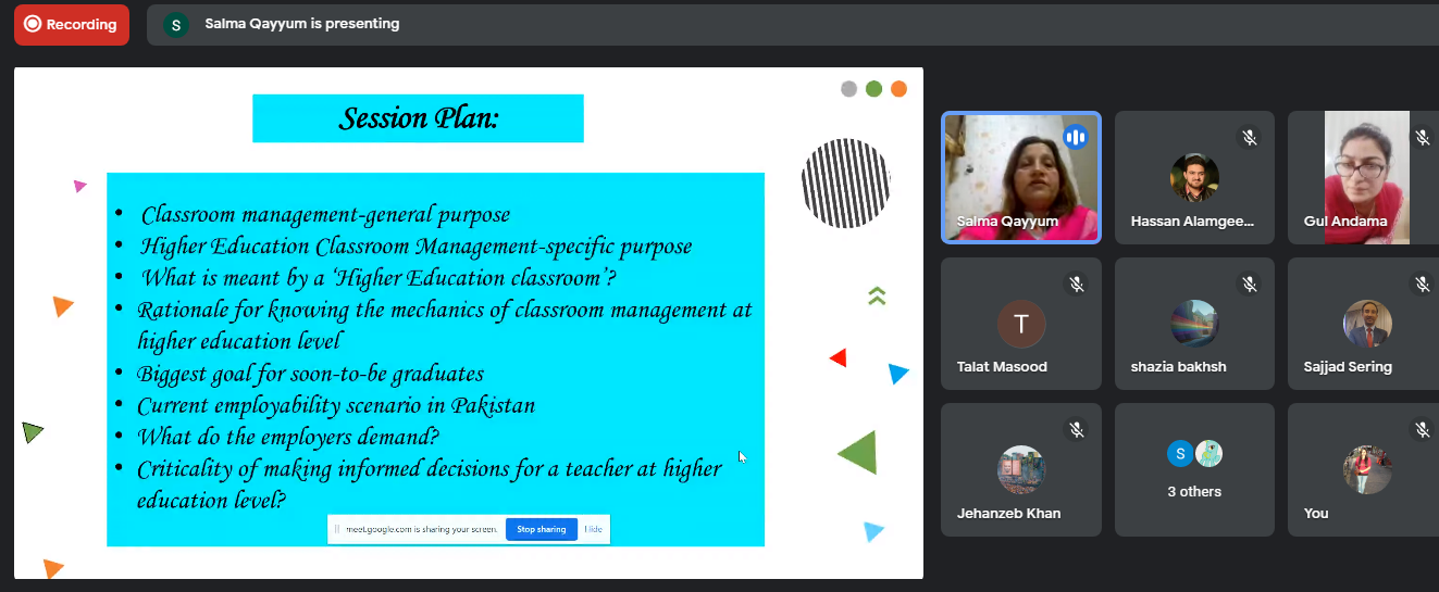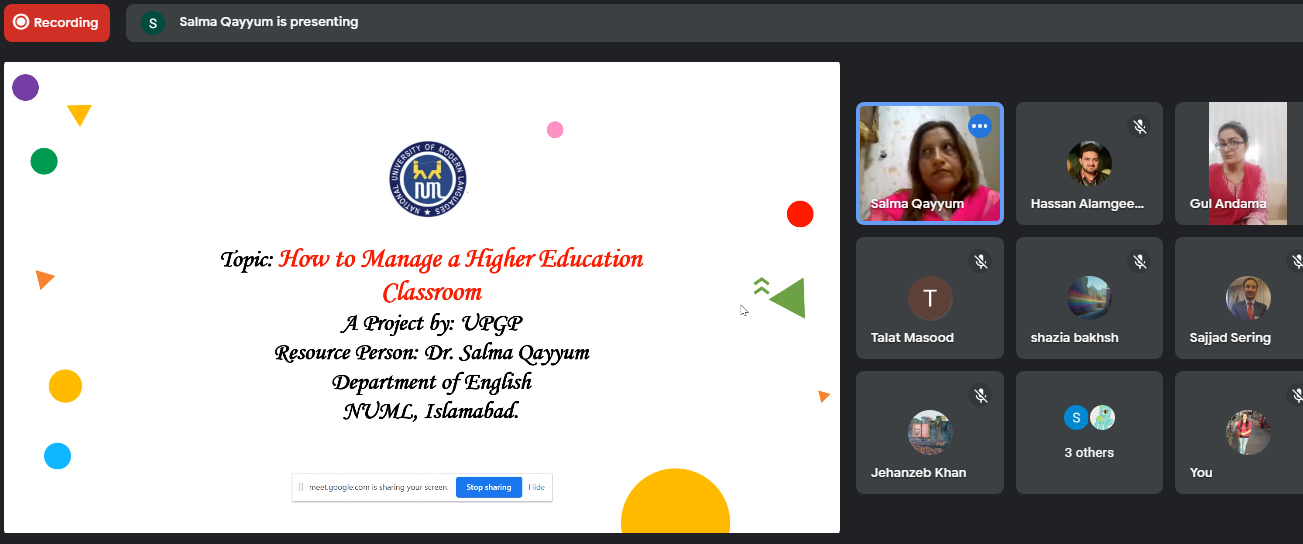 Phase 1 of first Grant was held online on zoom. The trainers were teachers from NUML who went University of North Texas for training. The online session started on 28th September and ended on 7th October.